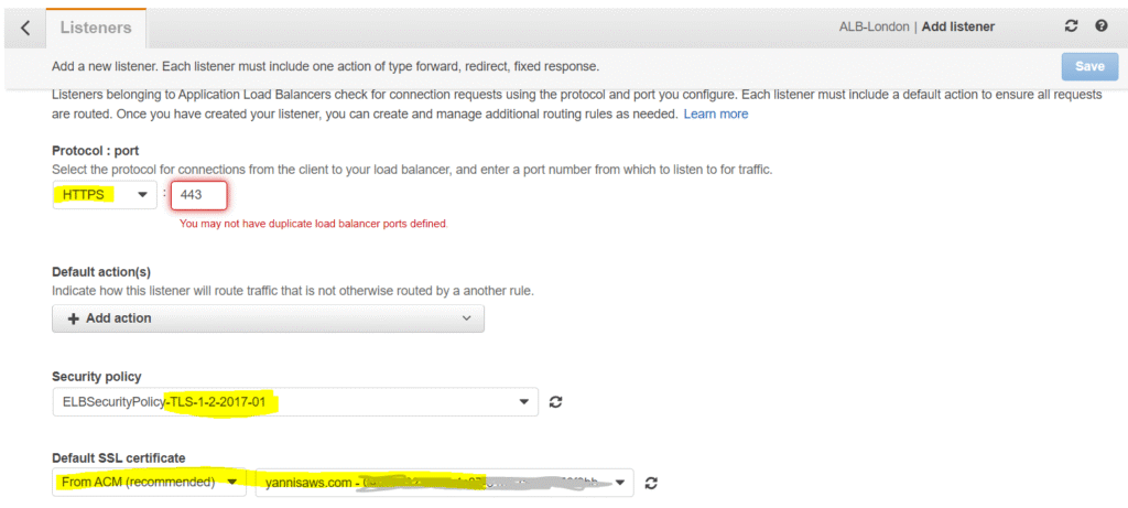 Suppose that you have a fleet of servers on AWS cloud and you want to balance traffic between them. Furthermore you want to make sure that network traffic is “secure” using TLS latest version.