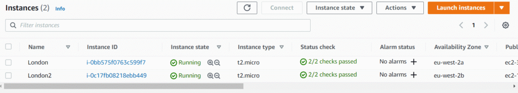 Repeat the above process to create a second EC2 server. This time choose the subnet in the second availability zone. Mine was “eu-west-2”.